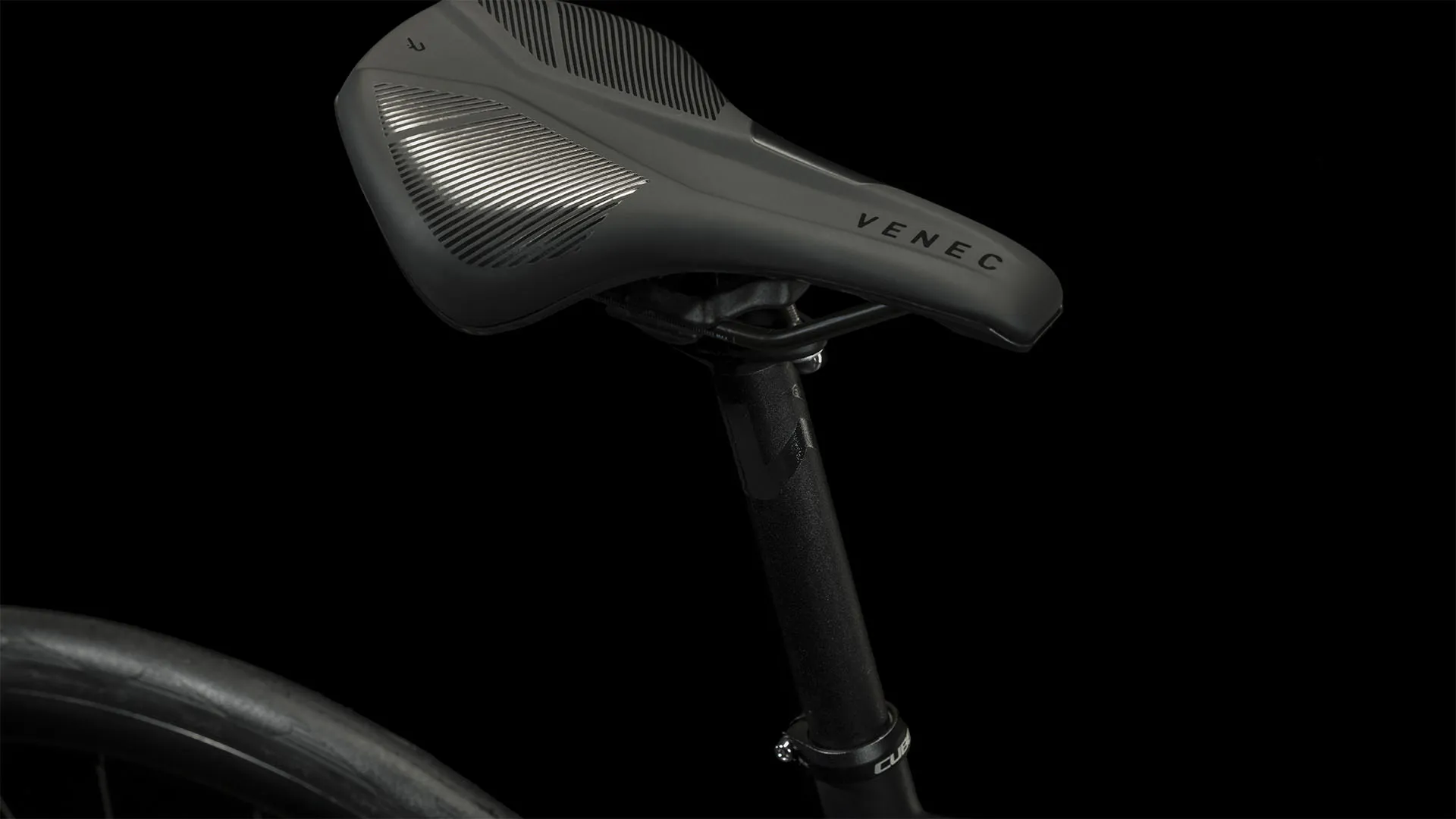 Performance and comfort don’t have to be mutually exclusive. In fact, endurance racers know that comfort is a real advantage. That’s why the Cube Attain GTC frame’s advanced carbon construction includes aero Flex Stays and a full carbon fork, which help reduce fatigue from road shock and vibration. A tapered head tube along with thru axles ensure pedalling efficiency and steering precision, and internally routed cables reduce maintenance downtime. If it looks fast, that’s because it is fast.