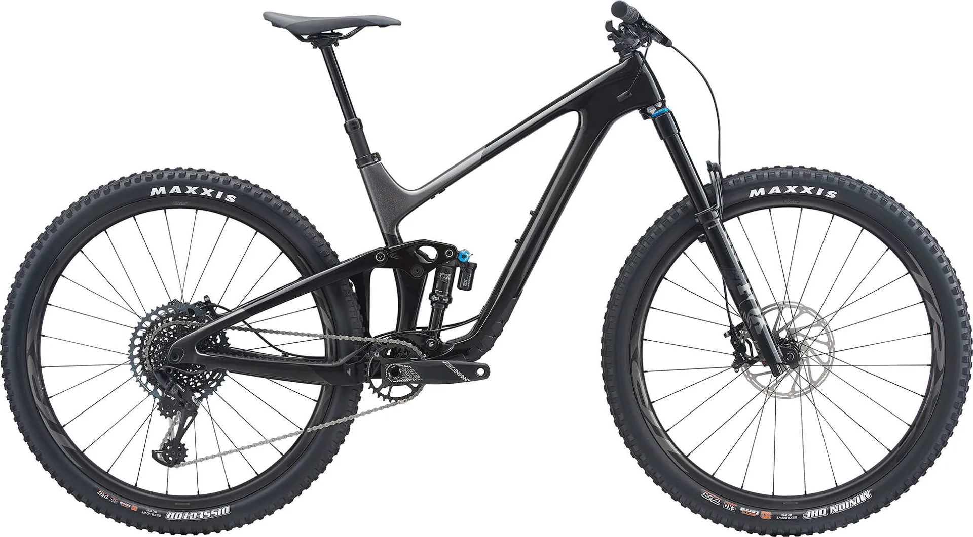 This new member of the Trance family is designed with a longer travel suspension setup for added control on the most challenging trails. The full composite frame is engineered for 135mm of rear travel and 150mm upfront. The Maestro rear suspension has a two-stage adjustable Advanced Forged Composite rocker arm with a trunnion-mount shock. The flip-chip-equipped rocker arm lets you adjust frame geometry for your own riding style and terrain. To fine-tune the ride, you can choose a steeper or slacker head tube angle (66.2 or 65.5 degrees) and seat tube angle (77.9 or 77.2 degrees), which results in either a 30mm or 40mm bottom bracket drop. And it’s all built around 29-inch wheels for added stability on rugged terrain.