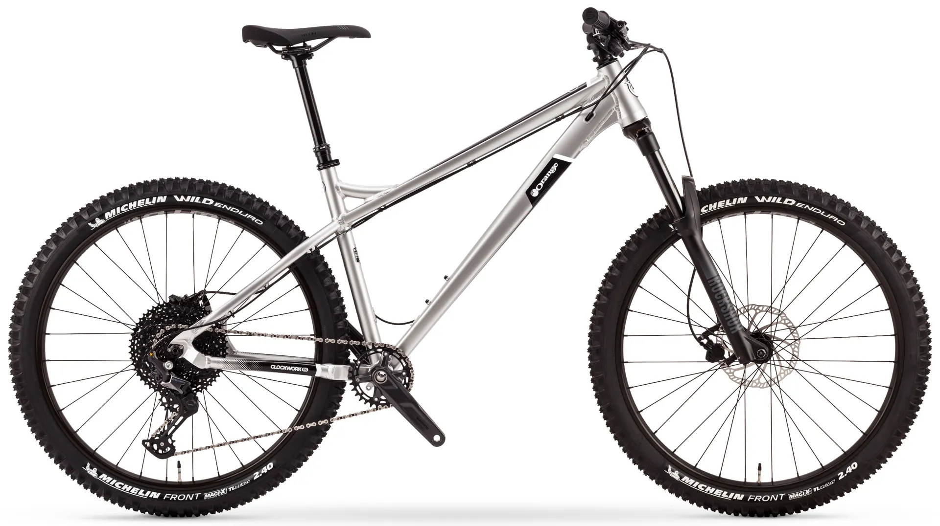 The Orange Clockwork EVO is an EVO in every sense of the word, designed to be progressive and push boundaries of what’s acceptable of a “do it all” hardtail bike. A fast, responsive chassis paired with geometry that encourages speed on the trail whether it points up or down. In essence, a ride with an enduro temperament with a trail bike physique.
