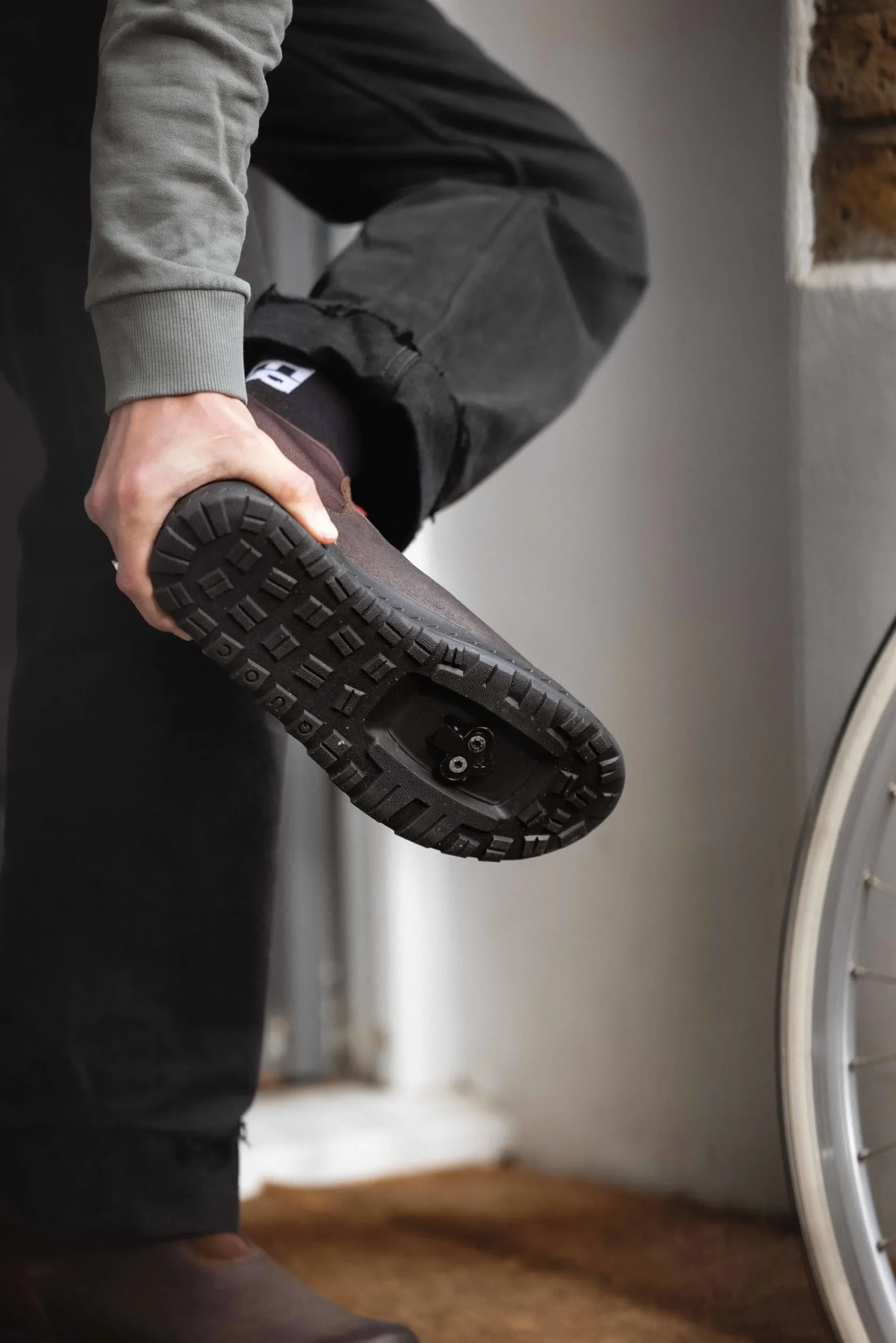 Cork-infused rubber outsolefeaturing fully recessed MTB/SPD cleat compatibility and gravel tire-inspired tread for excellent traction.
