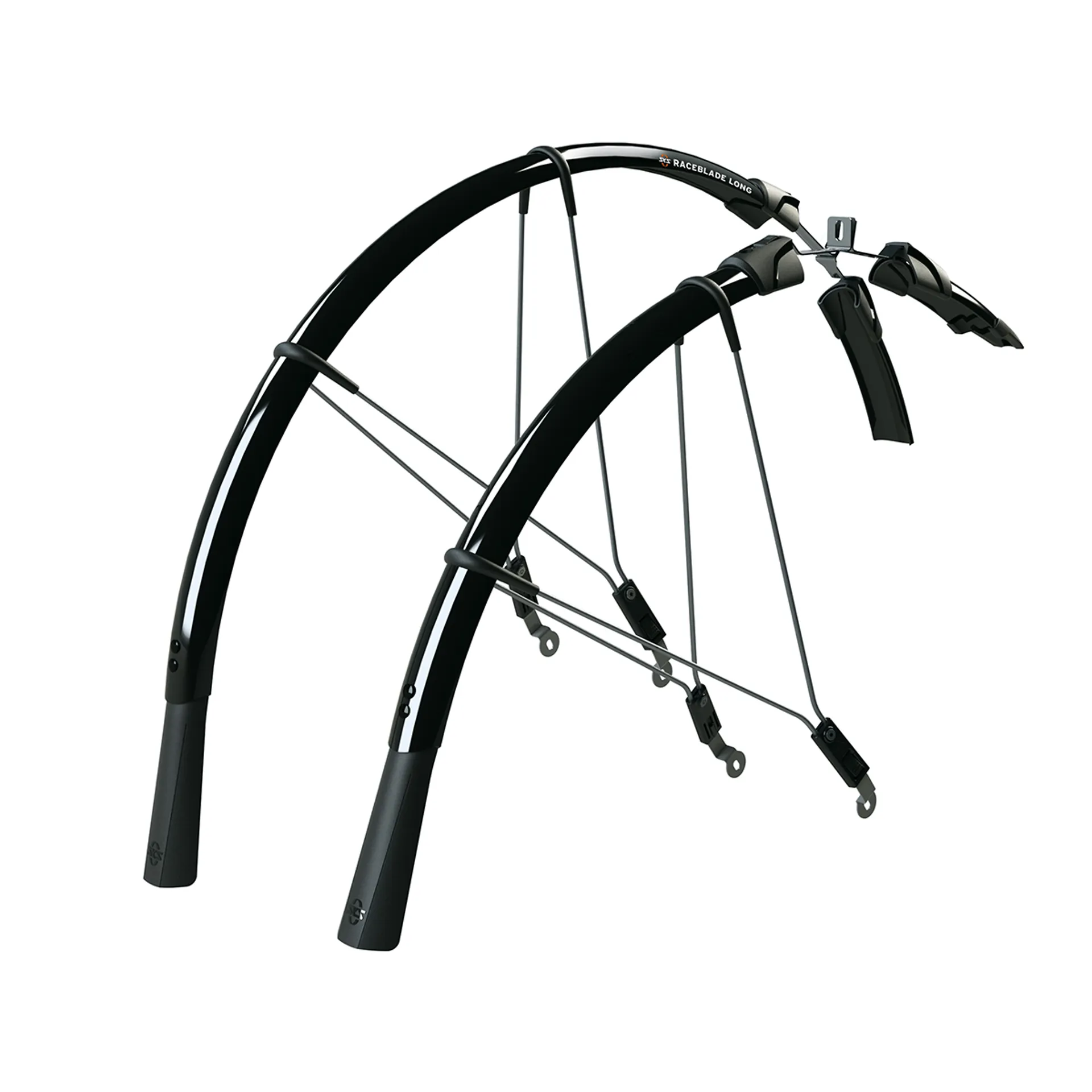 This ultra long clip-on mudguard set for road bike tyres up to max. 25 mm protects you, whether you’re riding your road bike in a warm summer rain or on solitary winter training rides.