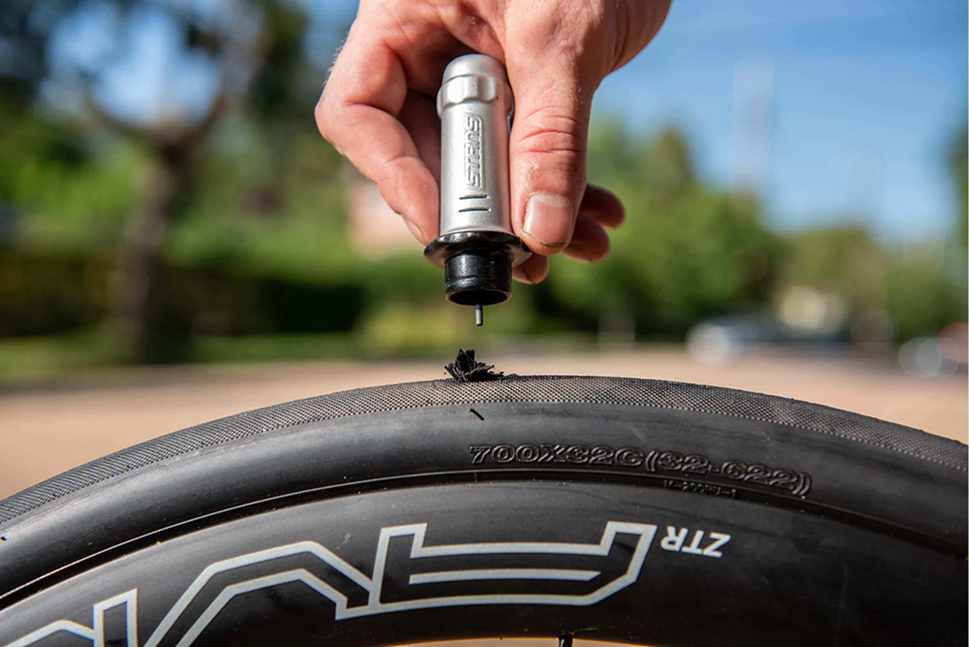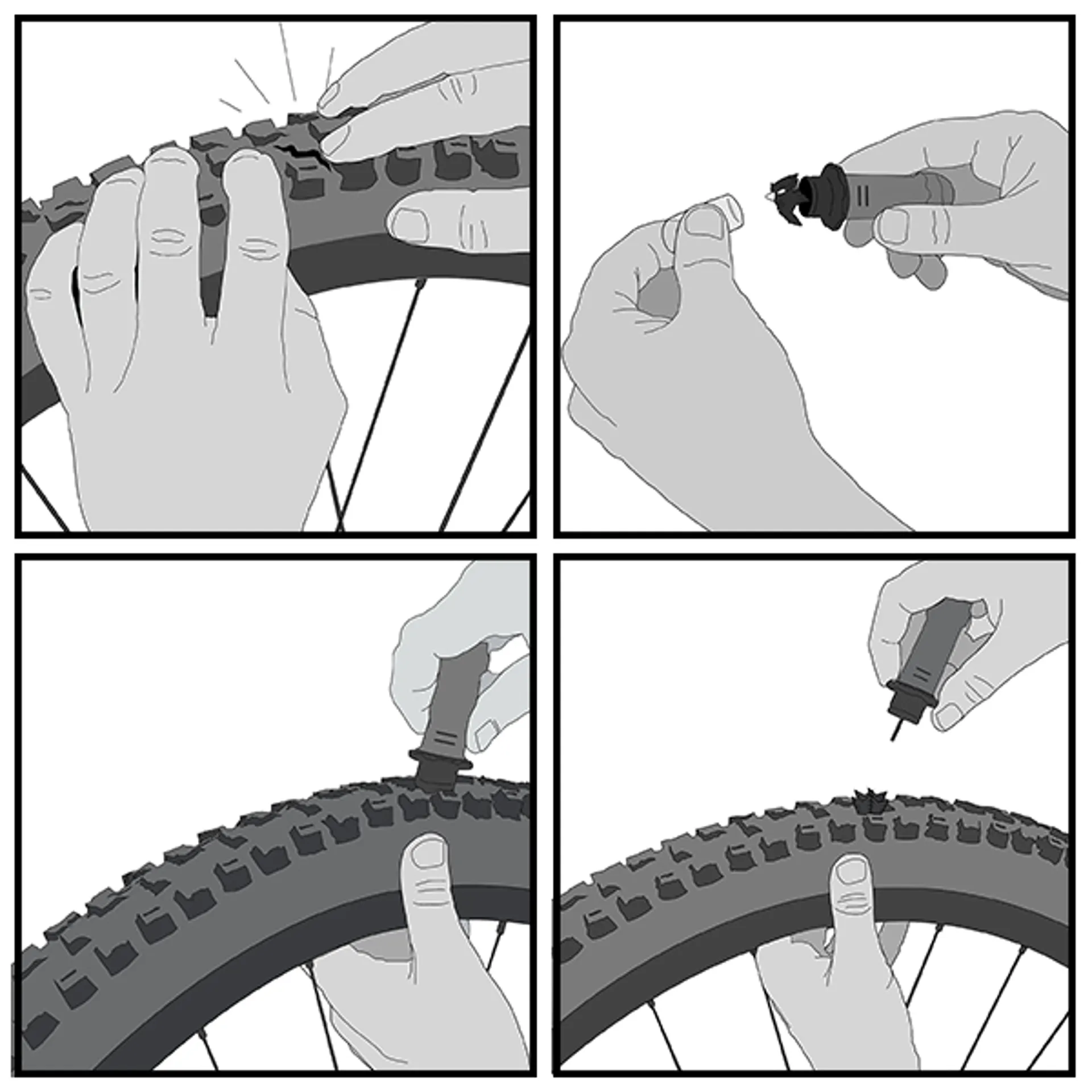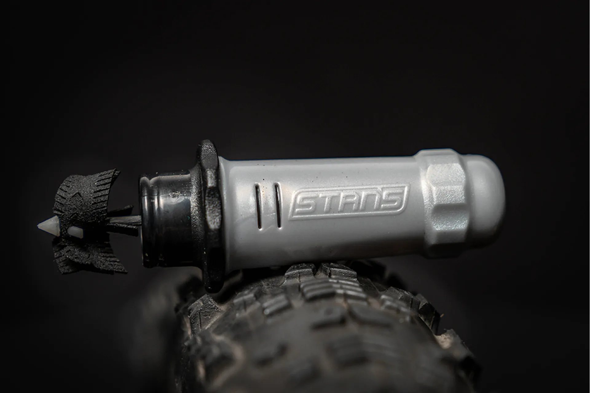 While traditional tire plugs try to wedge rubber strips into a puncture, the DART creates a chemical reaction with your Stan’s sealant to quickly form a permanent airtight bond. The dual actions of the DART include the mechanical fill created by inserting a piece of material into the puncture, and a chemical reaction that activates our sealant.